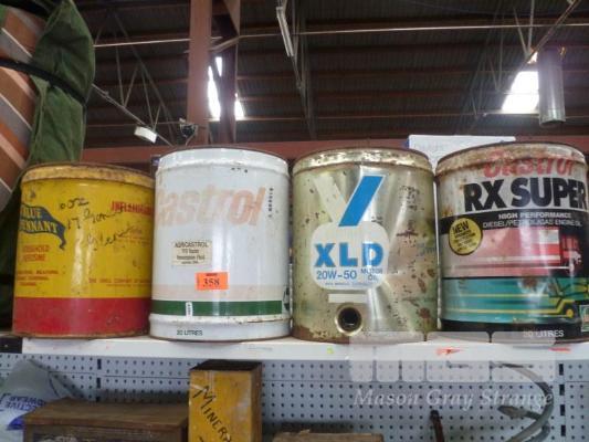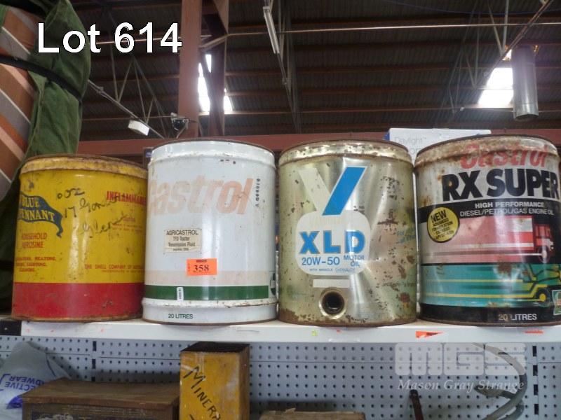 4 x PETRONALIA TINS, 20 LITRE, INC SHELL, BLUE PENNANT, CASTROL, VALVOLINE & RX SUPER