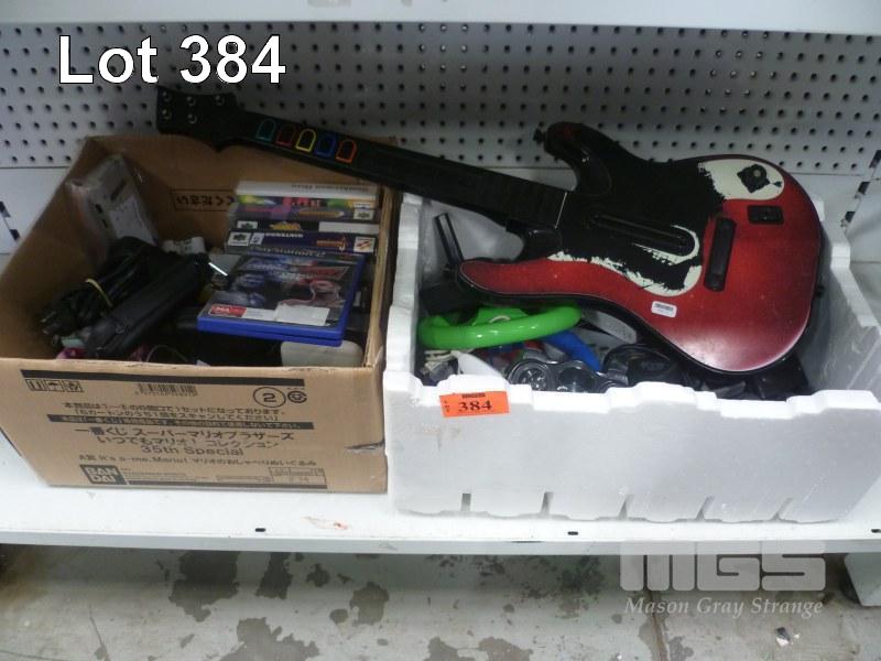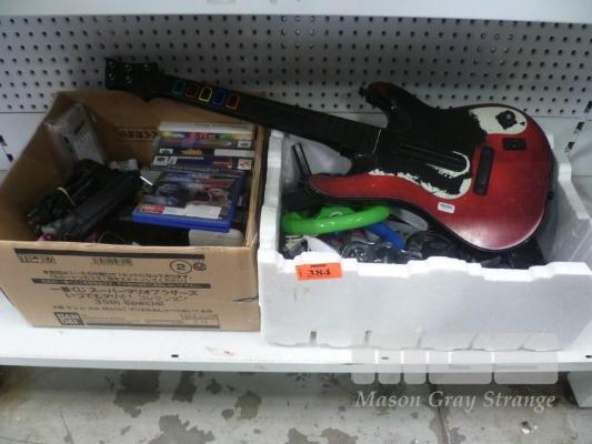 ASSORTED GAMING CONTROLLERS, EMPTY GAME BOXES, ETC