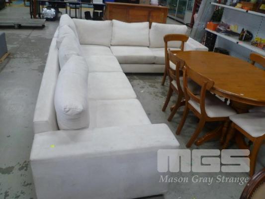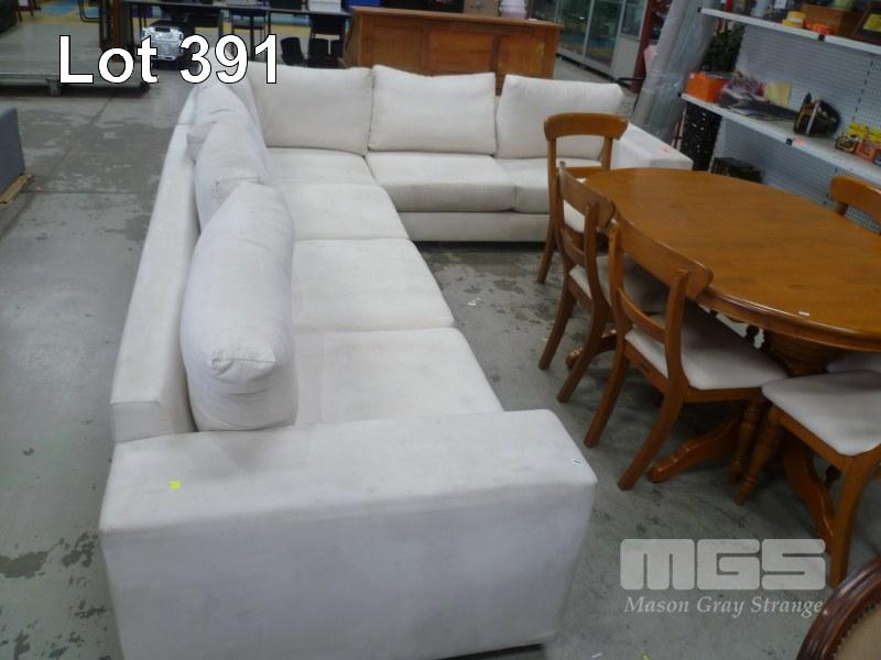 IVORY MICROFIBRE 2 PIECE L-SHAPE LOUNGE, 6 SEATER