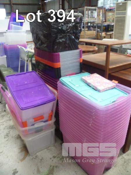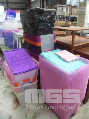 ASSORTED PLASTIC STORAGE TUBS (SOME LIDS MISSING)