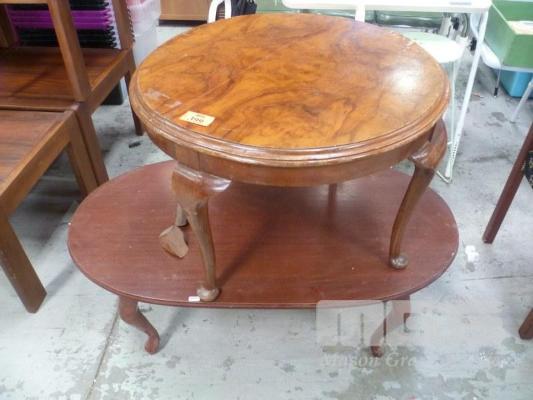 MAHOGANY COFFEE TABLE, 1.1m x 40cm (H) & OCCASIONAL TABLE, WALNUT, 69cm ROUND, 48cm (H)