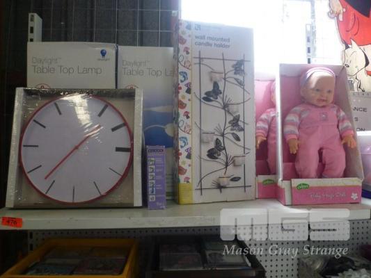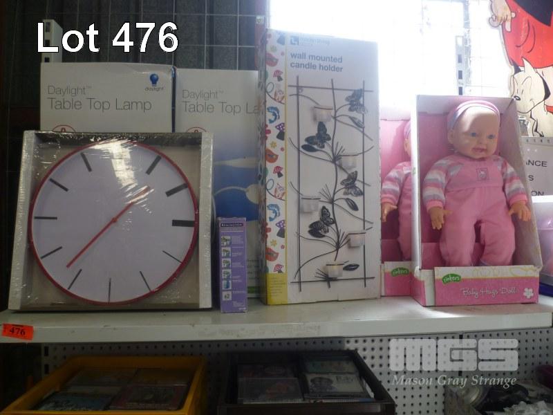 2 x TABLE LAMPS, WALL MOUNT CANDLE HOLDER, 2 x TINKERS DOLLS & WALL CLOCK