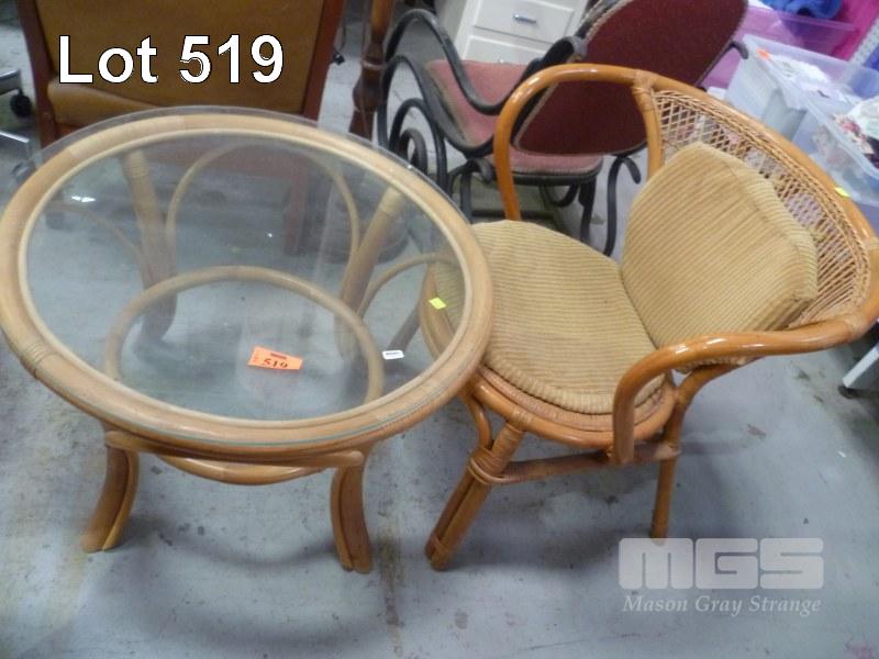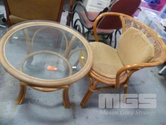 CANE ARM CHAIR WITH ROUND CANE TABLE
