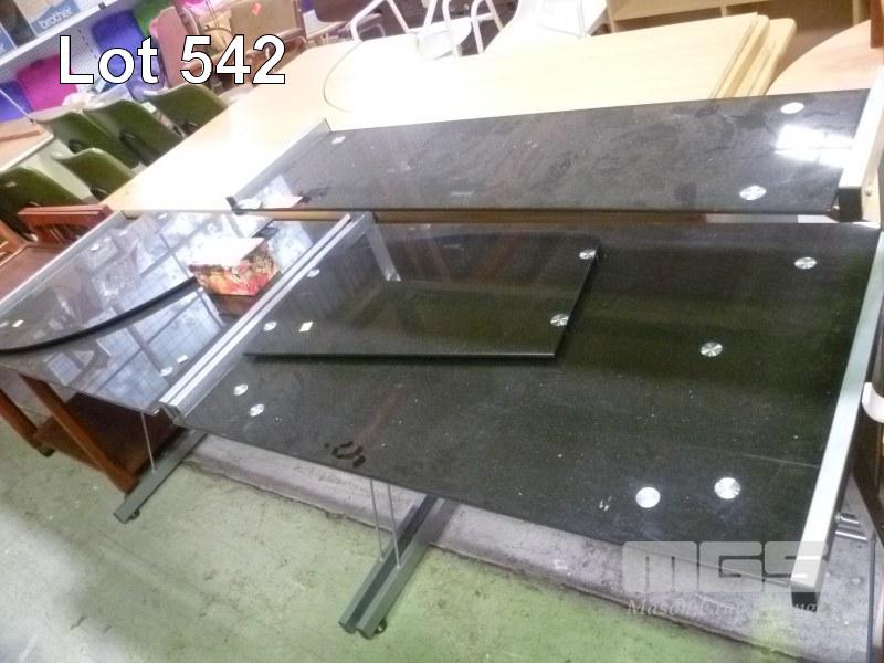 2 x COMPUTER DESKS, METAL FRAME, GLASS TOPS