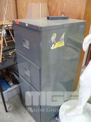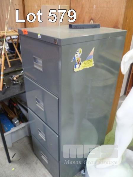 GREY METAL FILING CABINET, 4 DRAWER