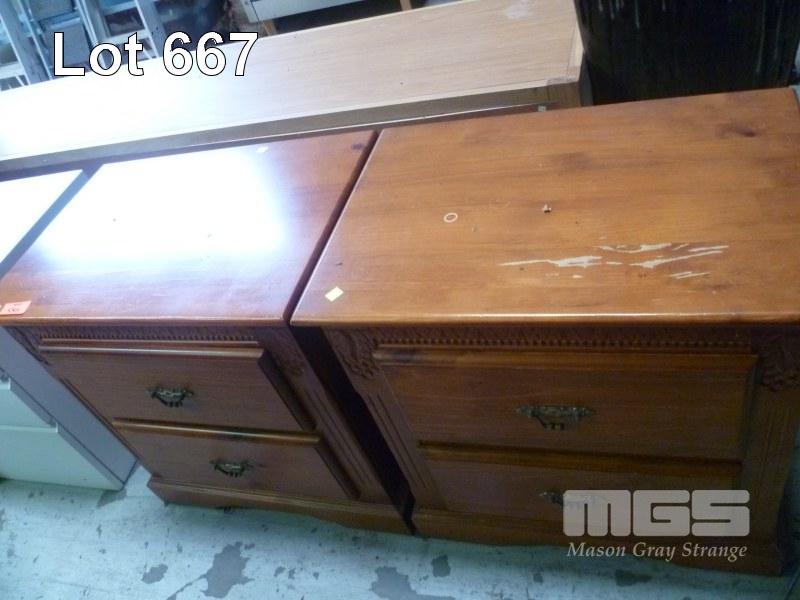 PAIR TIMBER BEDSIDE CABINETS, 2 DRAWER