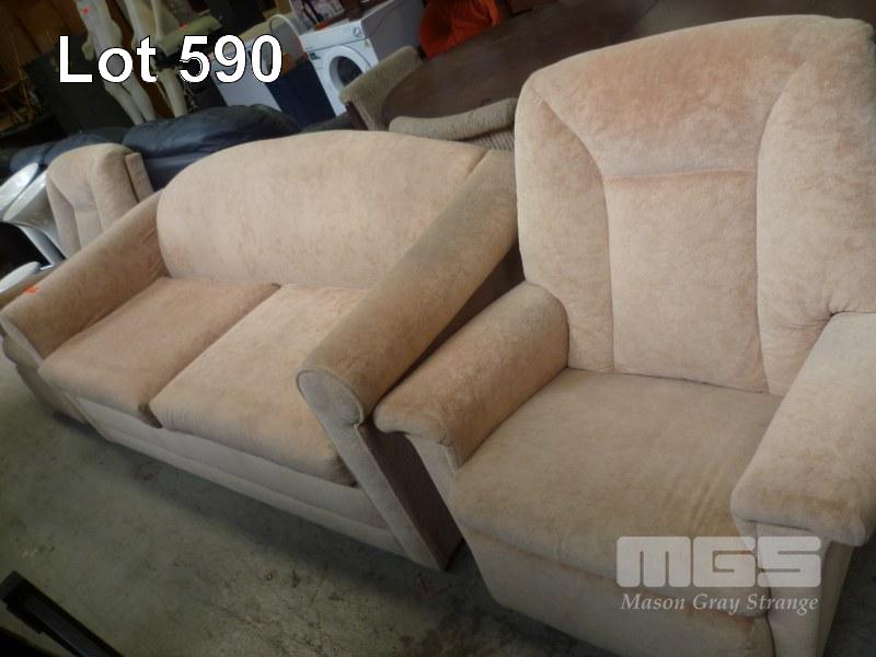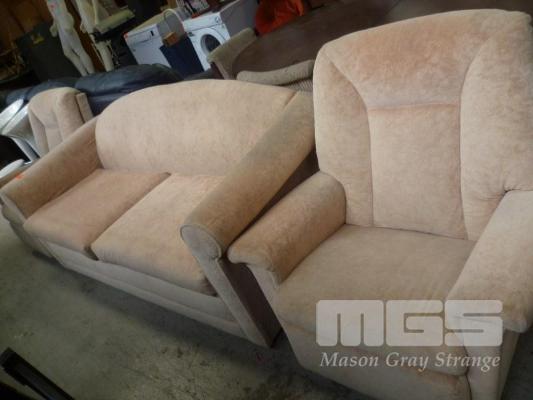 PINK FABRIC 3 PIECE LOUNGE SUITE INC 2.5 SEATER & 2 x RECLINERS
