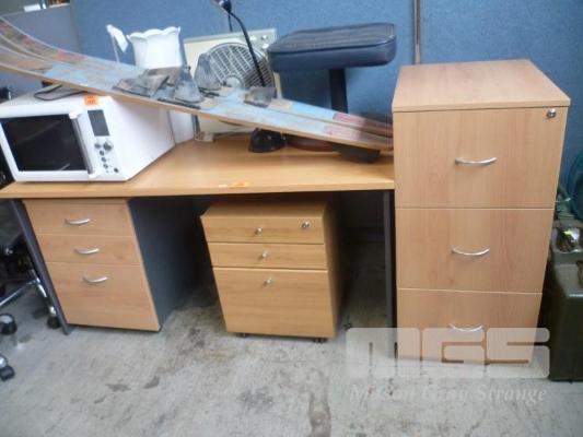 BLONDEWOOD/GREY LAMINATE OFFICE DESK, 2 x MOBILES & 3 DRAWER FILING CABINET