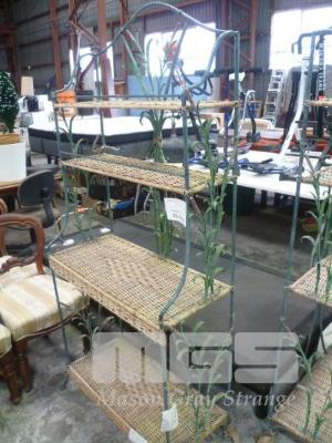 DISTRESSED GREEN, WROUGHT IRON FRAME PLANTER STAND