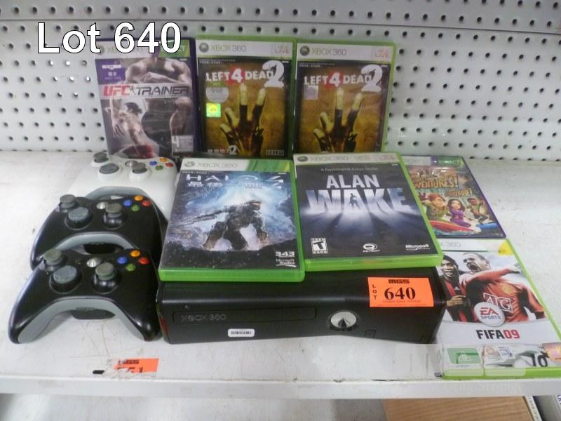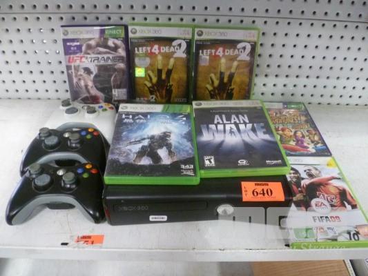 XBOX 360 GAMING CONSOLE (NO CABLES), 3 x CONTROLLERS & 7 x GAMES