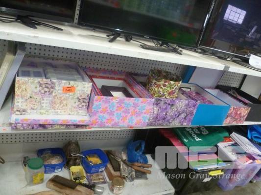 ASSORTED GIFT BOXES & PLASTIC CONTAINERS (2 X SHELVES)