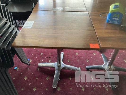4 x CAFE TABLES, 70 x 70cm, STAINED TIMBER TOP
