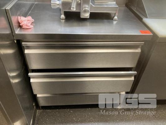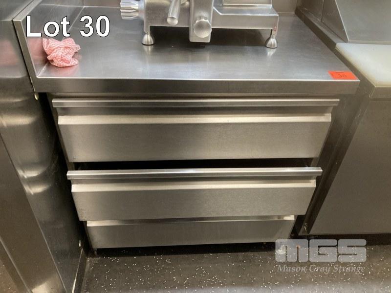 STAINLESS STEEL 3 DRAWER BENCH, 93 x 63cm, WITH SPLASHBACK