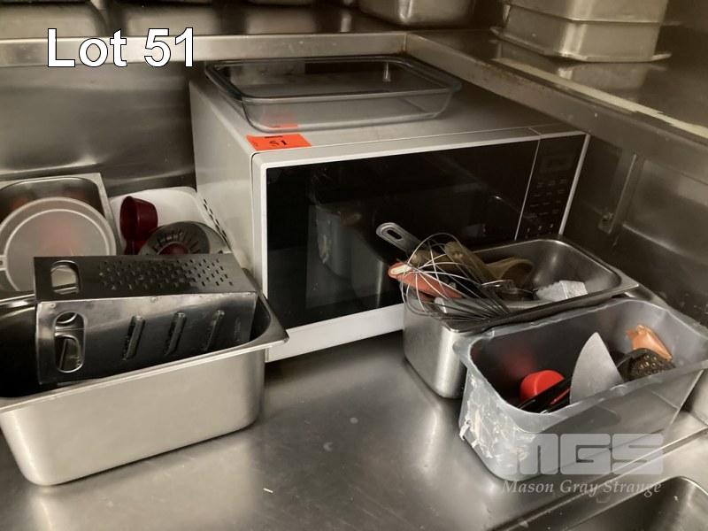 MICROWAVE OVEN & ASSORTED KITCHEN UTENSILS