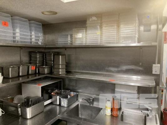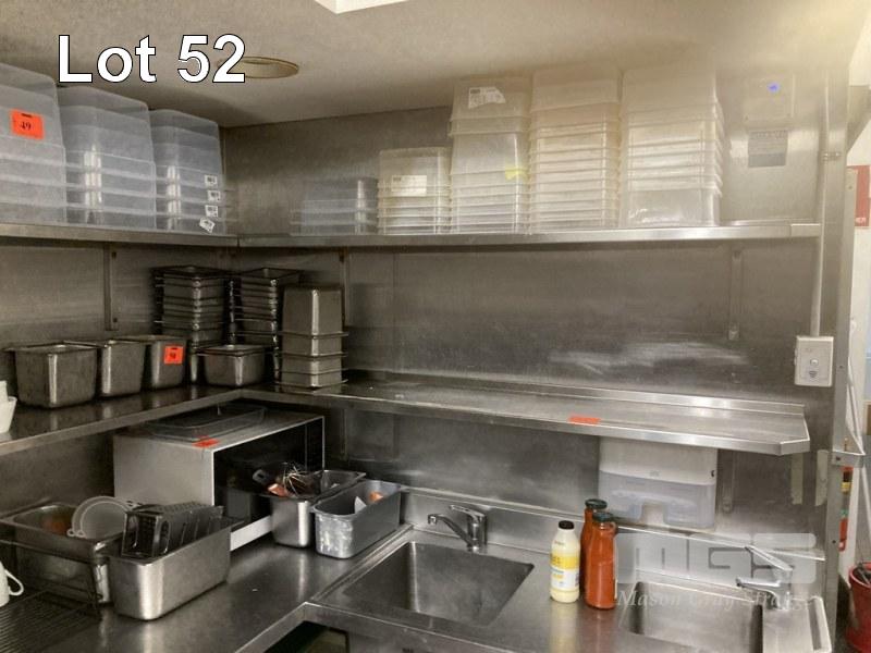 2 x CORNER STAINLESS STEEL WALL SHELVES, 190 & 180cm