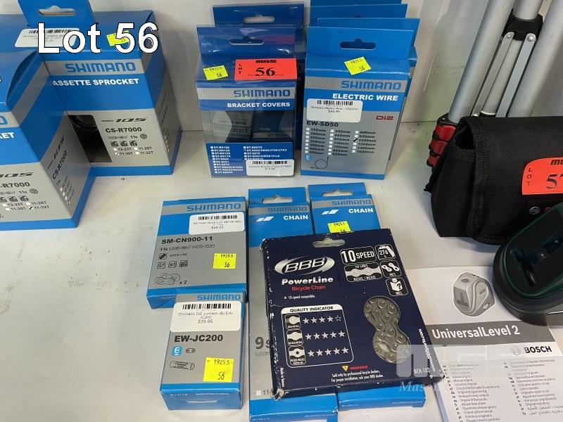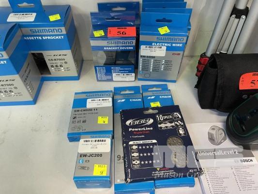 ASSORTED BICYCLE PARTS INC CHAIN, BRACKET COVERS, ELECTRIC WIRE, ETC