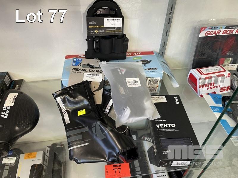 ASSORTED BICYCLE TOOLS, PARTS & ACCESSORIES, INC XLAB STARTER KIT, BAR TAPE, SHOE COVERS M, BIKE LOCK