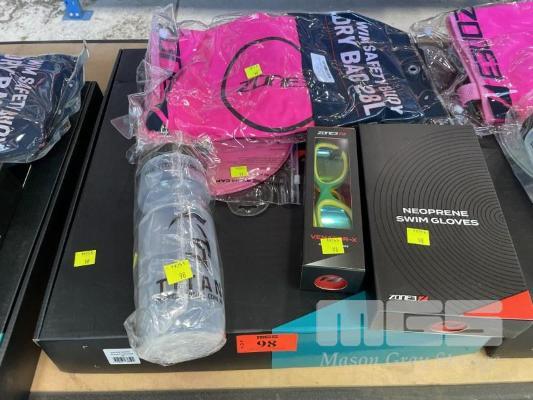 TRIATHLON PACK INC WOMENS ASPIRE WETSUIT, XS GOGGLES, SWIM CAP, GLOVES, BUOYANCY DRY BAG & WATER BOTTLE