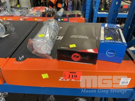 TRIATHLON PACK INC MENS ASPIRE WETSUIT, S GOGGLES, SOCKS, L & WATER BOTTLE