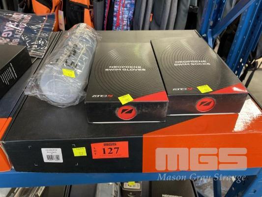 TRIATHLON PACK INC MENS ASPIRE WETSUIT, M GLOVES, SOCKS, M & WATER BOTTLE