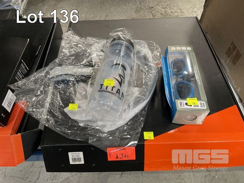 SWIM CAP, GOGGLES & WATER BOTTLE