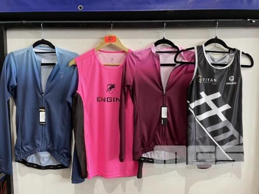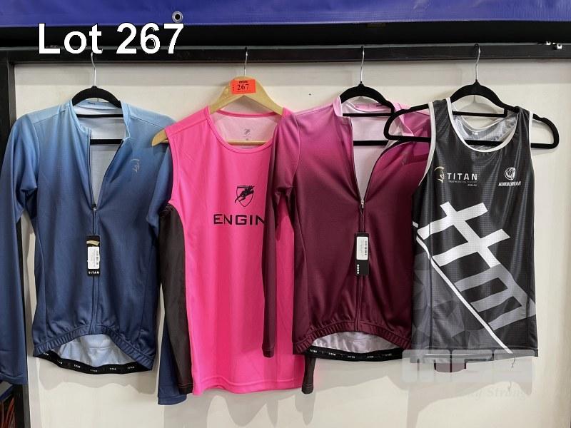 4 x ASSORTED SPORTS TOPS & SINGLETS, S, ENGINE, TITAN