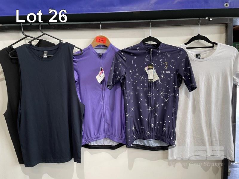 5 x ASSORTED TOPS, JERSEYS & SINGLETS, S, XS