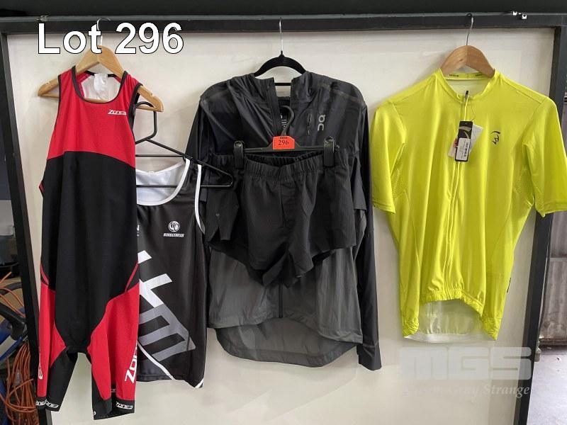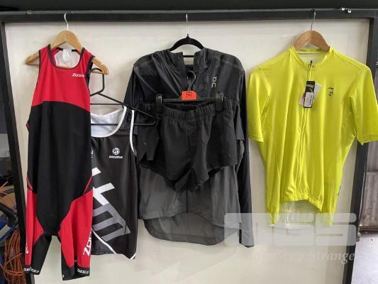5 x ASSORTED ITEMS INC TRIATHLON SUIT, JACKET, JERSEYS & SHORTS, M