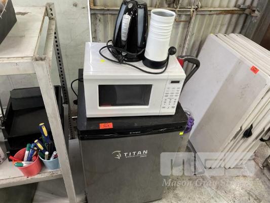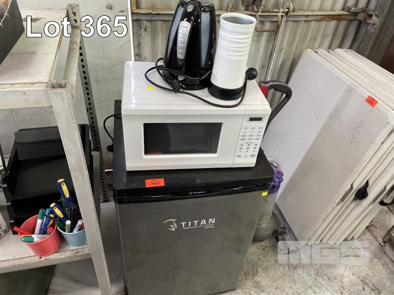 BAR FRIDGE, 240V WITH KETTLE & HOMEMAKER MICROWAVE