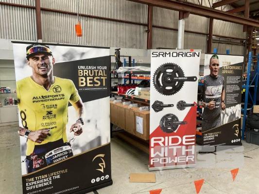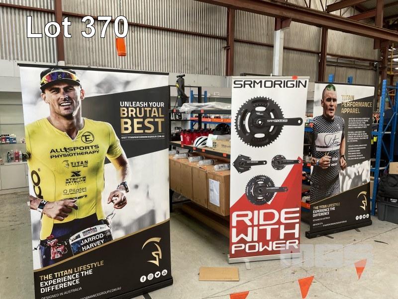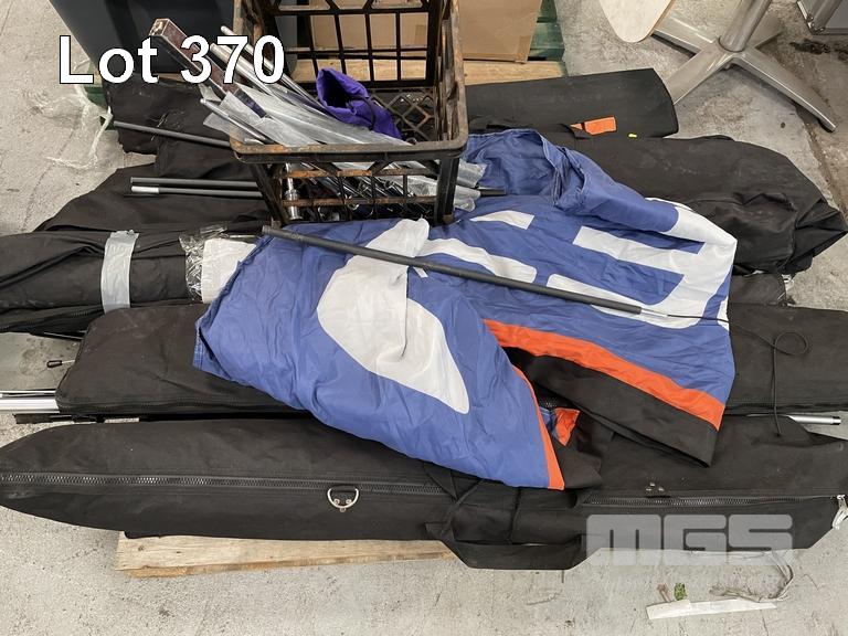 ASSORTED ADVERTISING POP UP BANNERS, TEAR DROP BANNERS & STANDS