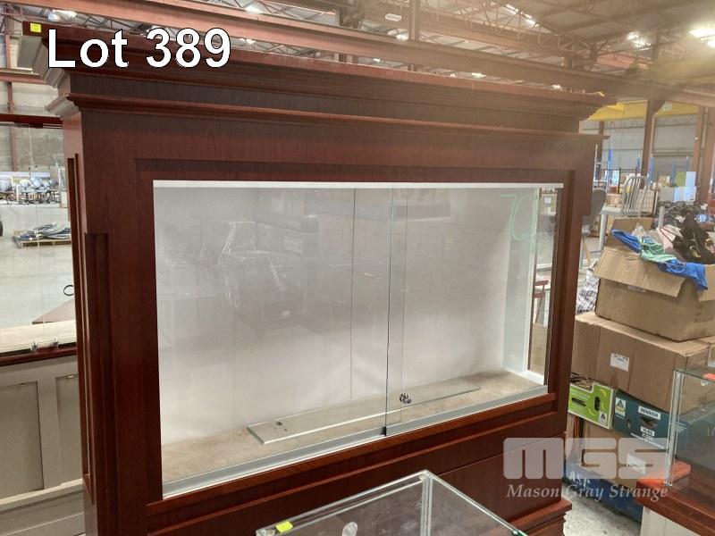 JEWELLERY DISPLAY CASE, 190 x 210cm, INTERNAL LIGHTING, STAINED TIMBER
