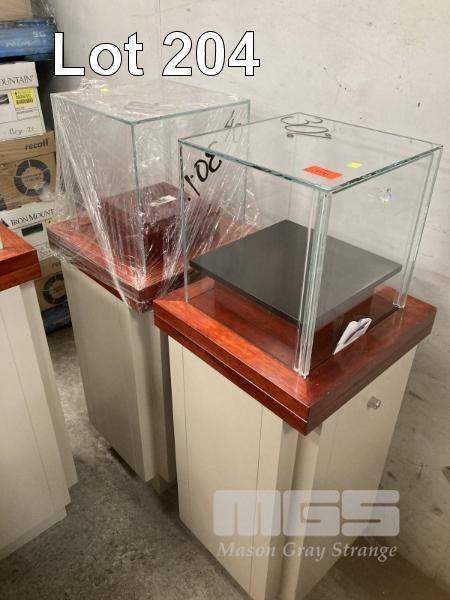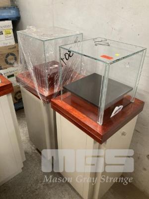 2 x JEWELLERY PEDESTAL DISPLAY CASES, 123 x 44 x 44cm, 2 PAC, BEIGE