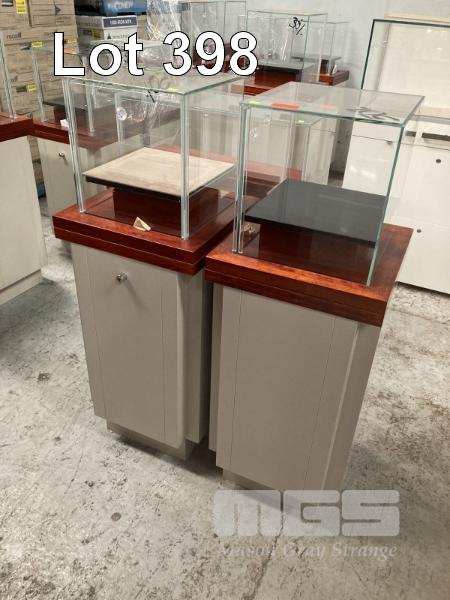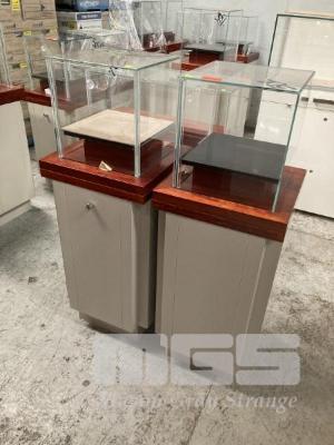 2 x JEWELLERY PEDESTAL DISPLAY CASES, 123 x 44 x 44cm, 2 PAC, BEIGE