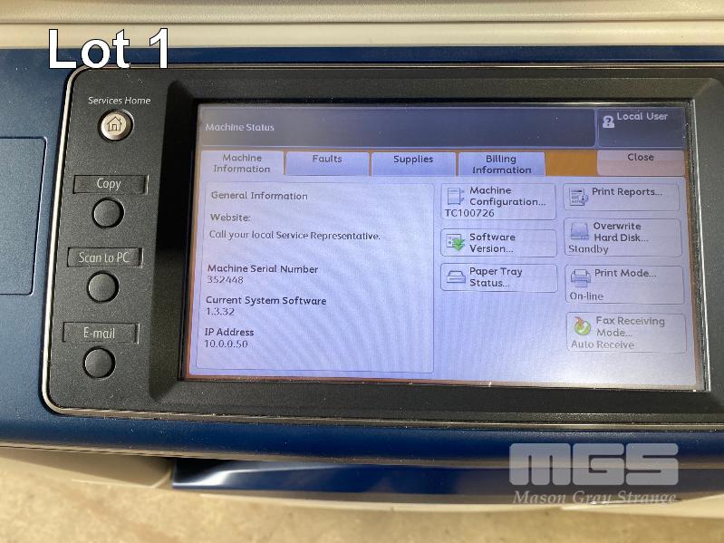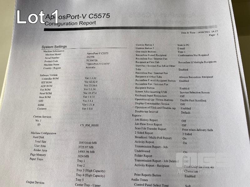 PHOTOCOPIER, FUJI XEROX APEOSPORT-V C5575 COLOUR DIGITAL, ADF, PRINTER USB & NETWORK PORTS, FINISHER (A-FN07), 62,685 COLOUR & 503,732 B&W COPIES SHOWING (TEST PAGE ATTACHED) S/N:352448