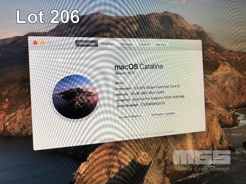 APPLE iMAC (A1418), CORE i5 5575R (5TH GEN) @ 2.8GHz, 16GB DDR3 RAM, 256GB SSD, BUILT-IN 21.5" DISPLAY (1920x1080), INTEL IRIS PRO GRAPHICS 6200, Wi-Fi, MAC OS 10.15 INSTALLED (NO KEYBOARD, NO MOUSE) S/N:C02SN064GG7D