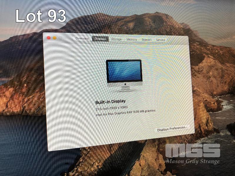 APPLE iMAC (A1418), CORE i5 7360U (7TH GEN) @ 2.3GHz, 8GB DDR4 RAM, 1TB SATA HDD, BUILT-IN 21.5" DISPLAY (1920x1080), INTEL IRIS PLUS GRAPHICS 640, Wi-Fi, MAC OS 10.15 INSTALLED (NO KEYBOARD, NO MOUSE) S/N:C02V882CH7JY