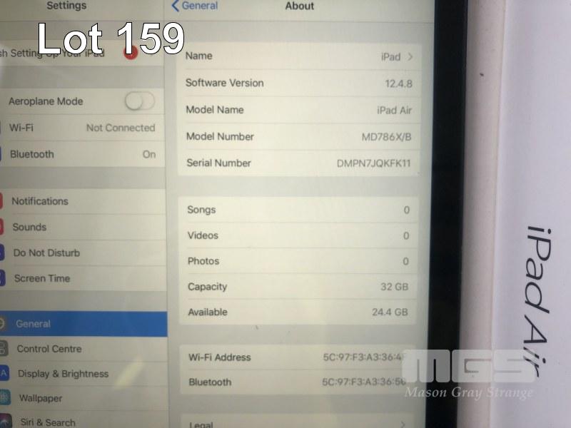 APPLE iPAD AIR, 32GB, Wi-Fi, SPACE GREY, MODEL A1474 WITH CABLE, CHARGER & COVER S/N:DMPN7JQKFK11
