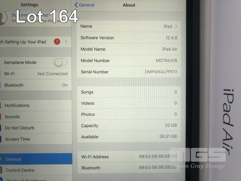 APPLE iPAD AIR, 32GB, Wi-Fi, SPACE GREY, MODEL A1474 WITH CABLE, CHARGER & COVER S/N:DMPMX4LFFK11