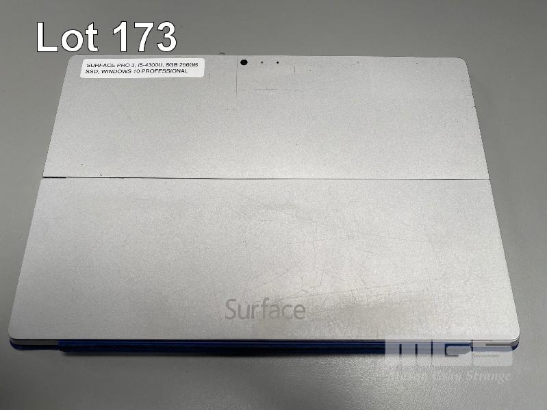 TABLET PC, MICROSOFT SURFACE PRO 3, MODEL 1631, CORE i5 4300U (4TH GEN) @ 1.9GHz, 8GB RAM, 256GB SSD, 12" TOUCHSCREEN, Wi-Fi, WINDOWS 10 PRO INSTALLED, KEYBOARD TYPE COVER & POWER SUPPLY S/N:010225451253