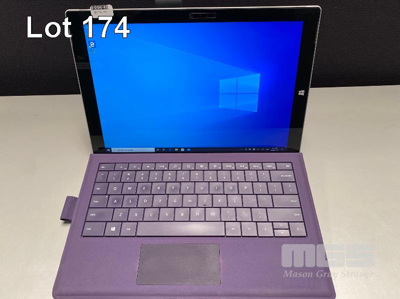TABLET PC, MICROSOFT SURFACE PRO 3, MODEL 1631, CORE i5 4300U (4TH GEN) @ 1.9GHz, 4GB RAM, 128GB SSD, 12" TOUCHSCREEN, Wi-Fi, WINDOWS 10 PRO INSTALLED, KEYBOARD TYPE COVER & POWER SUPPLY S/N:069194645253