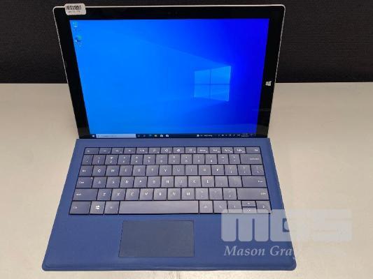 TABLET PC, MICROSOFT SURFACE PRO 3, MODEL 1631, CORE i5 4300U (4TH GEN) @ 1.9GHz, 4GB RAM, 128GB SSD, 12" TOUCHSCREEN, Wi-Fi, WINDOWS 10 PRO INSTALLED, KEYBOARD TYPE COVER & POWER SUPPLY S/N:082556244853