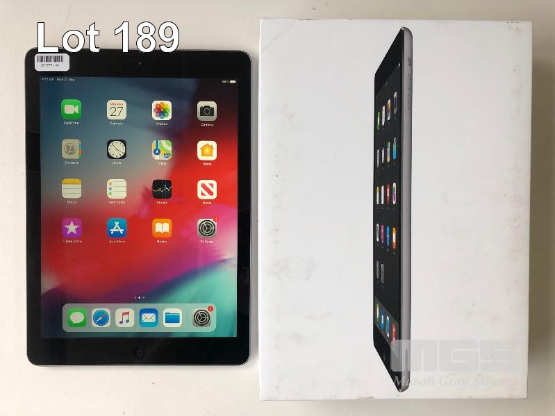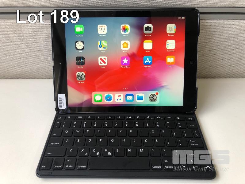 APPLE iPAD AIR, 32GB, Wi-Fi, SPACE GREY, MODEL A1474 WITH KENSINGTON KEYBOARD CASE (NO CABLE, NO CHARGER) S/N:DMPMX34FFK11