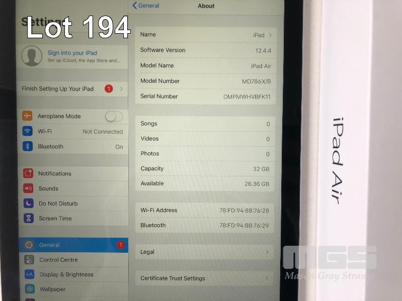 APPLE iPAD AIR, 32GB, Wi-Fi, SPACE GREY, MODEL A1474 (NO CABLE, NO CHARGER) (NOTE: SCRATCHES ON SCREEN) S/N:DMPMWHVBFK11