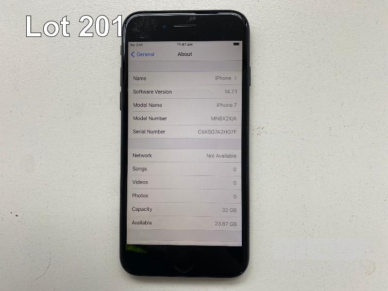 APPLE iPHONE 7, 32GB, BLACK, MODEL A1778 (NOTE: SCRATCHES ON SCREEN) (NO CHARGER, NO CABLE) S/N:C6KSG7A2HG7F