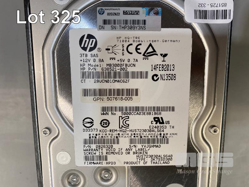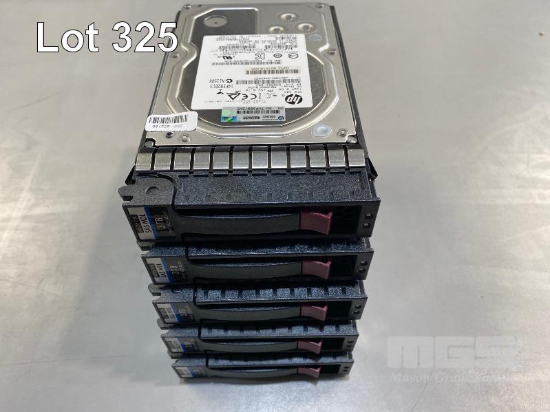5 x HP 3TB SAS HARD DRIVES, 3.5" WITH CADDIES