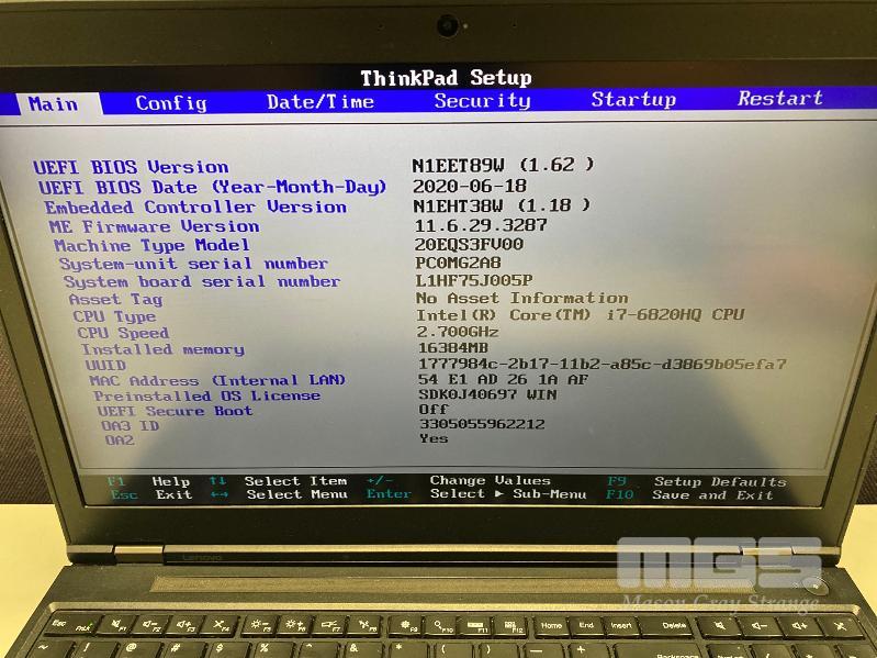 LAPTOP, LENOVO THINKPAD P50 MOBILE WORKSTATION (20EQS3FV00), CORE i7 6820HQ (6TH GEN) @ 2.7GHz, 16GB DDR4 RAM, 500GB NVMe M.2 SSD, 15.6" 4K WIDESCREEN (3840x2160), 4GB NVIDIA QUADRO M1000M VIDEO, Wi-Fi, BLUETOOTH, WINDOWS 10 PRO INSTALLED & POWER SUPPLY (NOTE: MARKS ON SCREEN) S/N:PC0MG2A8