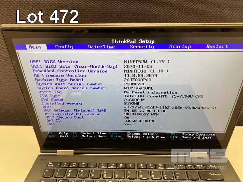 LAPTOP, LENOVO THINKPAD X1 YOGA 2ND GEN (20JE000PAU), CORE i5 7300U (7TH GEN) @ 2.6GHz, 8GB DDR4 RAM, 256GB NVMe M.2 SSD, 14" TOUCHSCREEN (1920x1080), INTEL HD VIDEO, Wi-Fi, BLUETOOTH, WINDOWS 10 PRO INSTALLED & USB-C POWER SUPPLY (NOTE: MINOR MARKS ON SCREEN) S/N:R90NPYZL