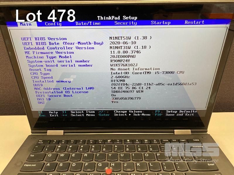 LAPTOP, LENOVO THINKPAD X1 YOGA 2ND GEN (20JE000PAU), CORE i5 7300U (7TH GEN) @ 2.6GHz, 8GB DDR4 RAM, 256GB NVMe M.2 SSD, 14" TOUCHSCREEN (1920x1080), INTEL HD VIDEO, Wi-Fi, BLUETOOTH, WINDOWS 10 PRO INSTALLED & USB-C POWER SUPPLY (NOTE: MINOR MARKS & SCRATCHES ON SCREEN) S/N:R90NPZ4Y