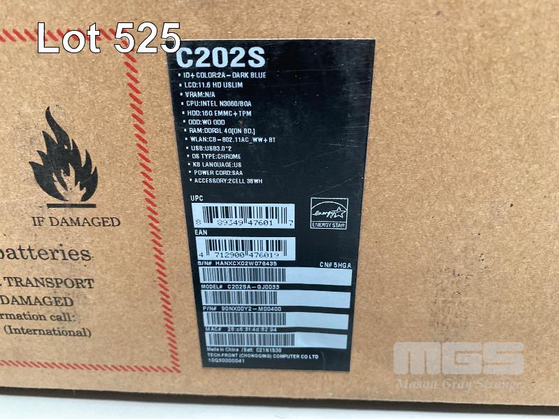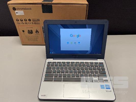 LAPTOP, ASUS C202S-GJ0033 CHROMEBOOK, INTEL N3060, 4GB RAM, 16GB STORAGE, 11.6" WIDESCREEN, Wi-Fi, CHROME OS INSTALLED & POWER SUPPLY S/N:HANXCX02W076435
