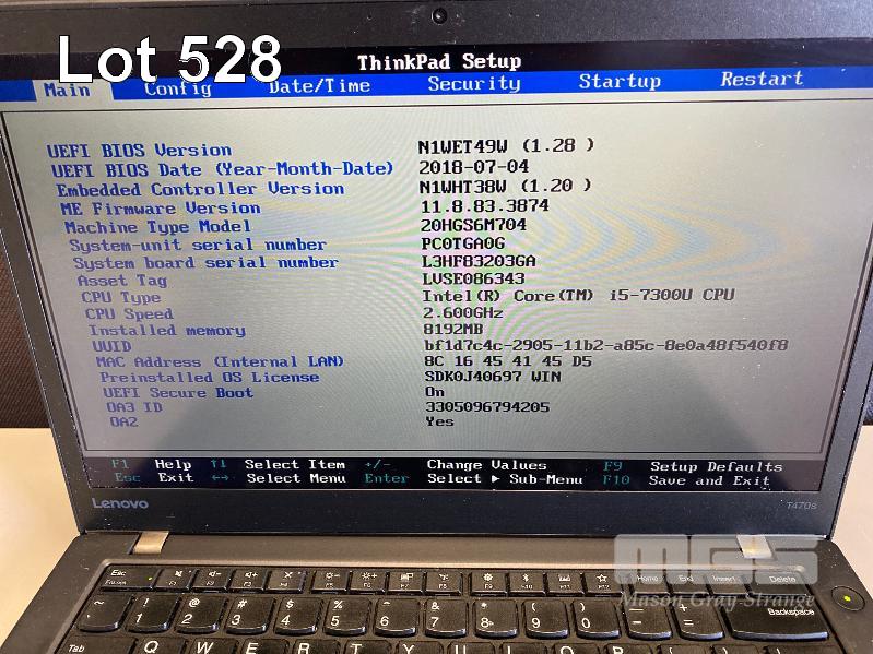 LAPTOP, LENOVO THINKPAD T470s (20HGS6M704), CORE i5 7300U (7TH GEN) @ 2.6GHz, 8GB DDR4 RAM, 256GB NVMe M.2 SSD, 14" WIDESCREEN (1920x1080), INTEL HD VIDEO, Wi-Fi, BLUETOOTH, WINDOWS 10 PRO INSTALLED, POWER SUPPLY & CARRY BAG S/N:PC0TGA0G